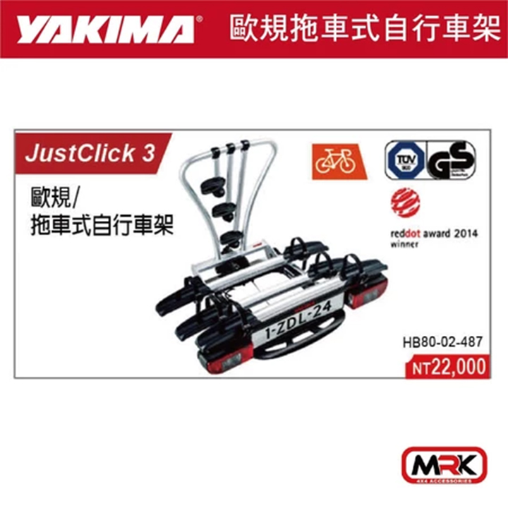 【YAKIMA】JUSTCLICK 3 歐規拖車式自行車架 腳踏車架 #HB80-02-487