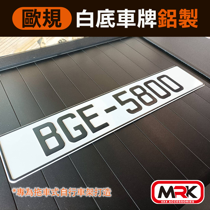 首頁 產品專區 【MRK】歐規白底車牌 鋁製 專為拖車式自行車架打造 拖車式腳踏車架 N001