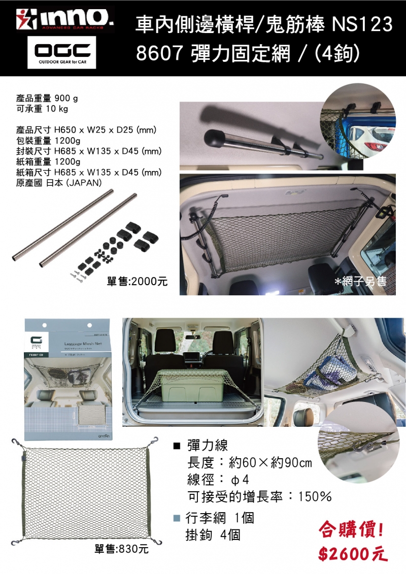 首頁 產品專區 【INNO】JIMNY 車內側邊橫桿 鬼筋棒 車頂橫桿 多功能 增加收納 NS123