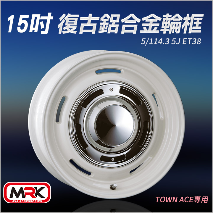 首頁 產品專區 【MRK】Toyota Town ace 專用 15吋 白色 復古鋁圈 復古輪框 復古框 珍珠白(單顆價)10531-15-TACE-W