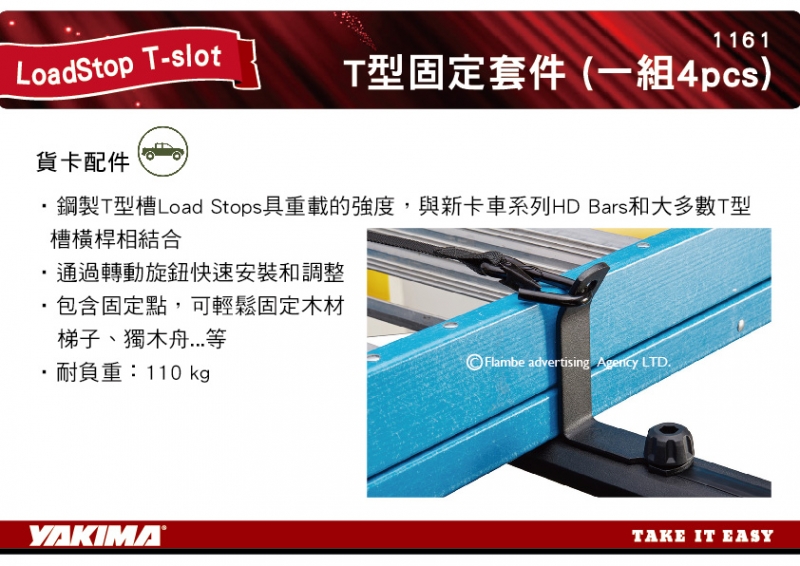 首頁 產品專區 【YAKIMA】LoadStop T-slot T型固定套件 (一組4pcs) 羊角 皮卡貨卡專用 1161