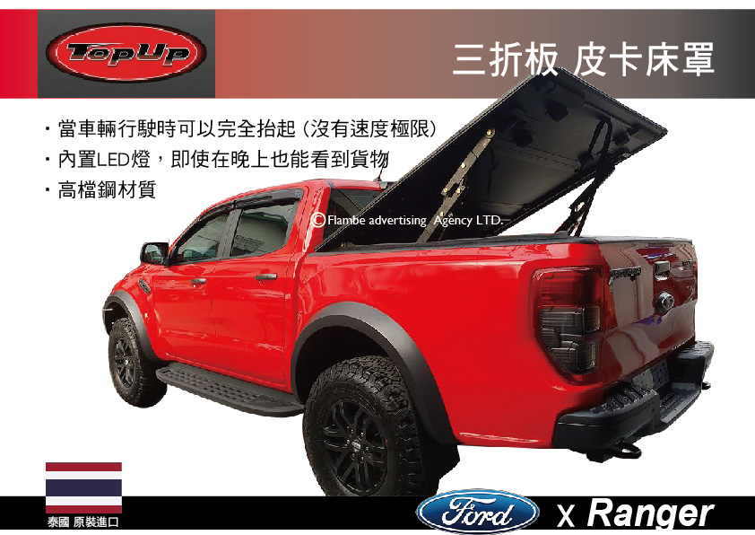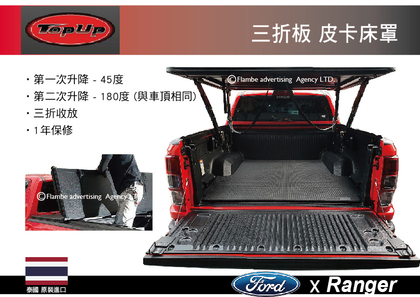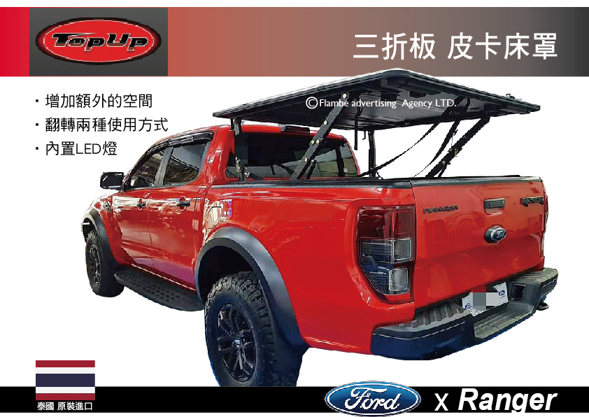 【TOPUP】TopFlip ULTIMATE 終極版三折板 兩段式開啟 無跑車架 FORD RANGER T8專用 TF-FR 020
