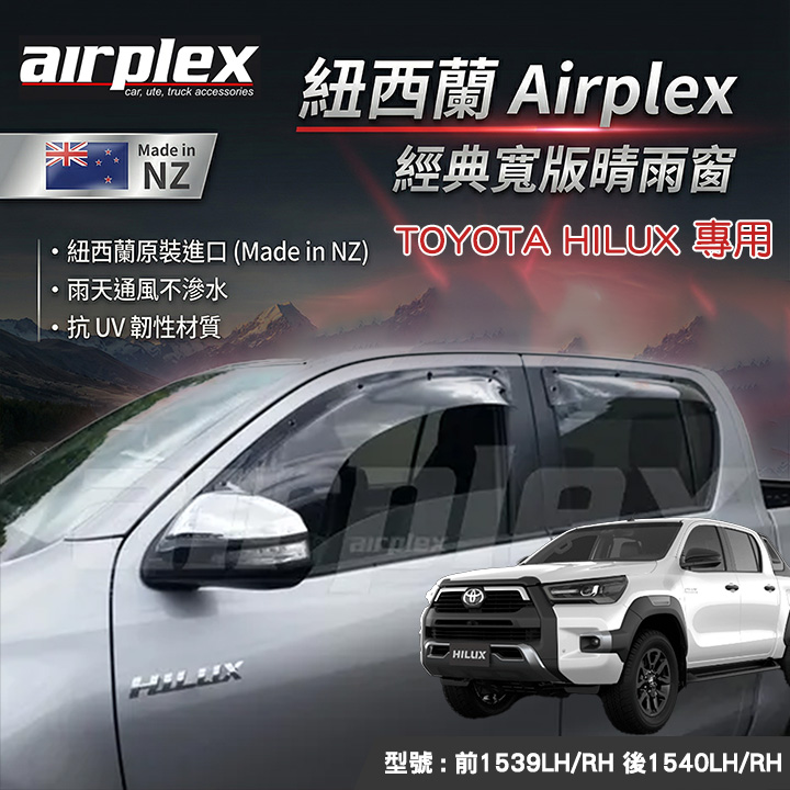 紐西蘭進口【AIRPLEX】寬版晴雨窗 TOYOTA HILUX 專用 1539LH 1539RH 1540LH 1540RH MRK