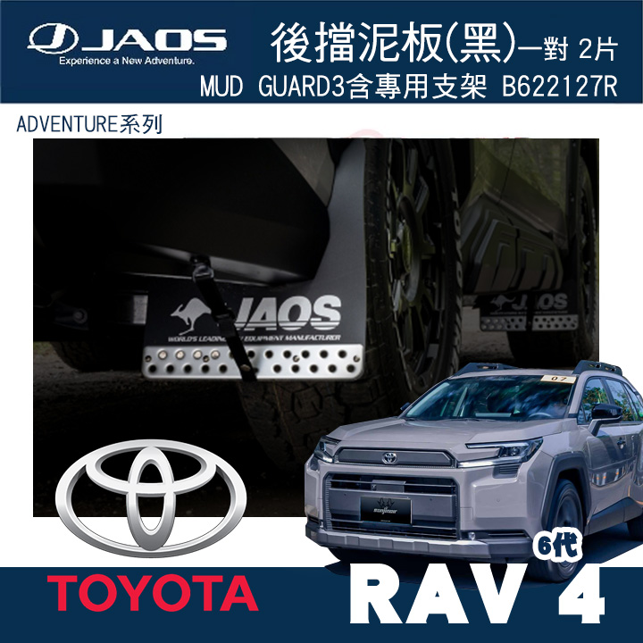 日本【JAOS】MUD GUARD3 後擋泥板(黑) 一對 2片 含專用支架 適用Rav4 6代 Adventure系列 B622127R