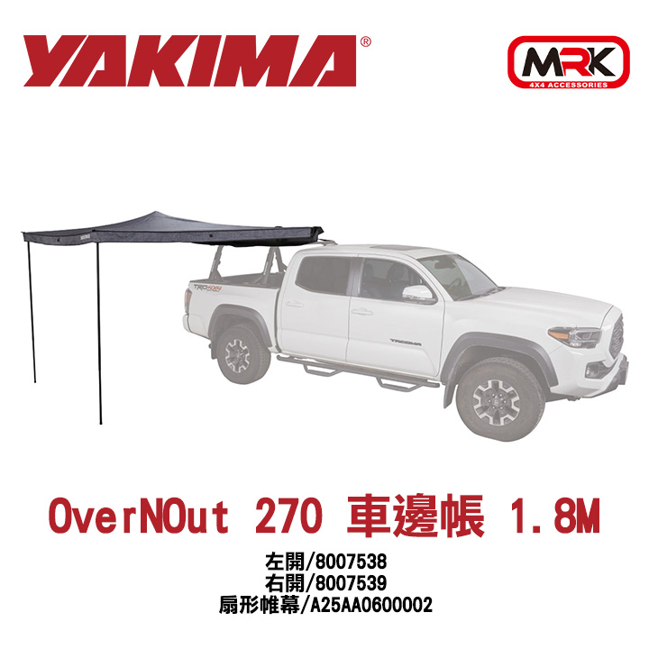 OverNOut 270 (1.8M) 是專為短軸距車輛、跨界休旅 (Crossover) 或皮卡車斗設計的精悍型扇形車邊帳。收納長度僅 1.8 公尺,完美契合短車頂線條,避免安裝過長造成的視覺負擔或尾門碰撞。儘管體積更小巧,展開後依然提供 270 度環繞式遮蔽,讓車側到車尾瞬間變成舒適的基地營。具備 Yakima 標誌性的美學與強悍性能,是追求機動性的戶外玩家不二之選。