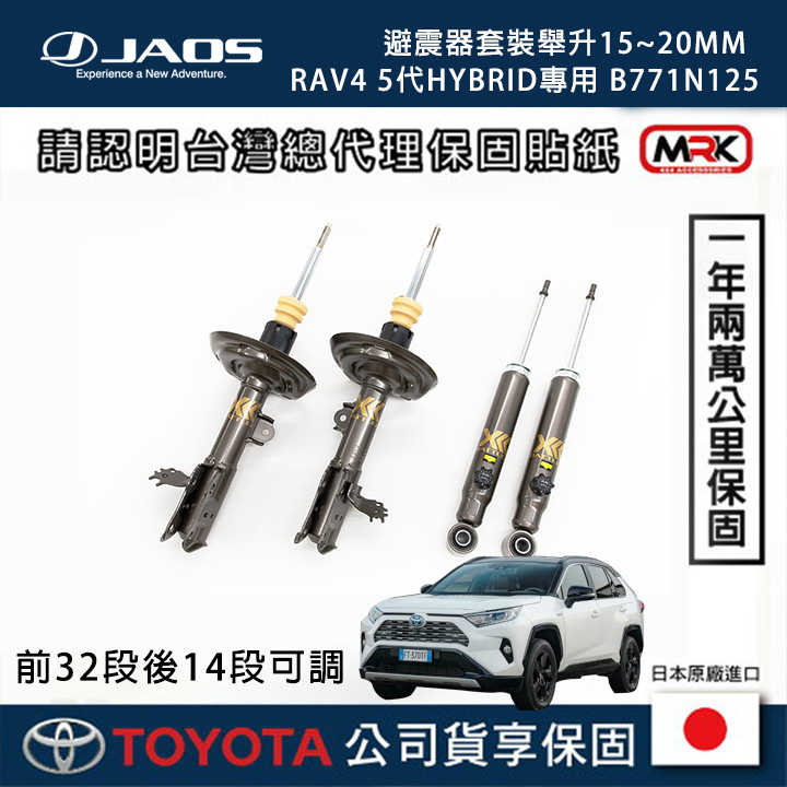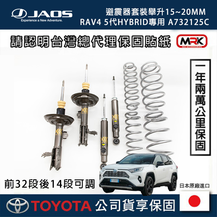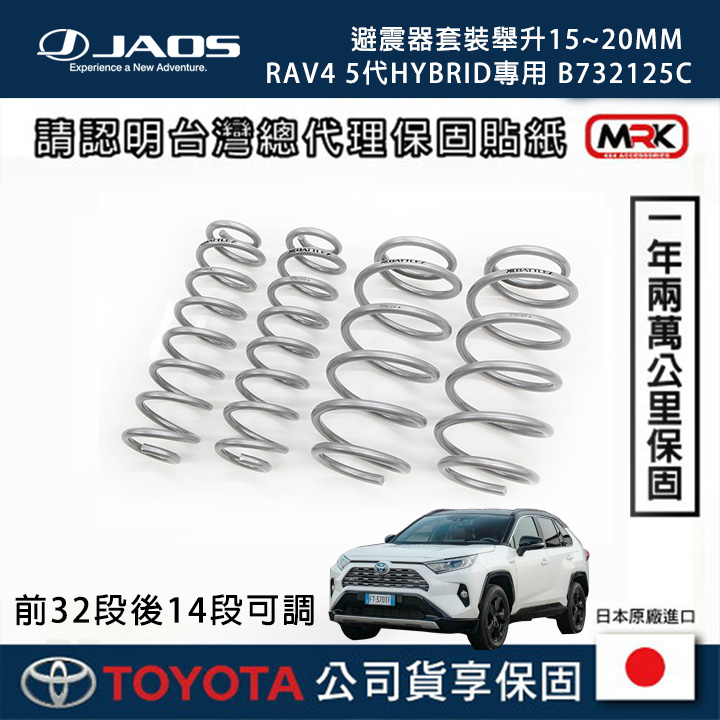 日本越野殿堂級品牌 JAOS 針對新吉開發的 BATTLEZ AJ 套裝,是追求路感平衡玩家的首選。不同於單純的加長避震,JAOS 採用了含有鈦合金成分的鋼材打造彈簧,有效抑止彈簧疲勞下垂。搭配 14 段阻尼可調功能,讓您可以隨時根據載重、單人通勤或假日露營來調整最適合的軟硬度。在 MRK 的專業安裝下,這套系統能讓您的 Jimny 擁有如歐系車般的沉穩路感。
