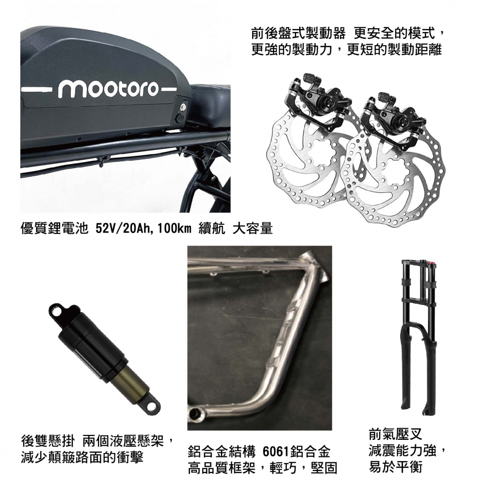 【MRK】MOOTORO R1 Cafe Retro 腳踏車 電動腳踏車 電動自行車架 1000W 52V20AH