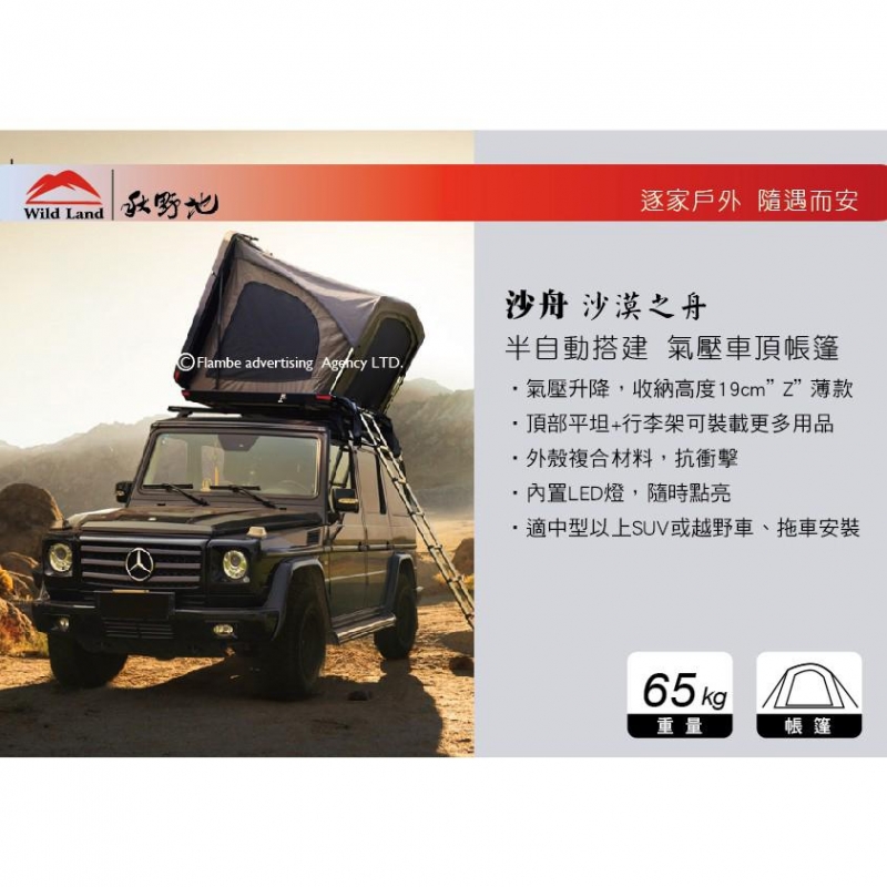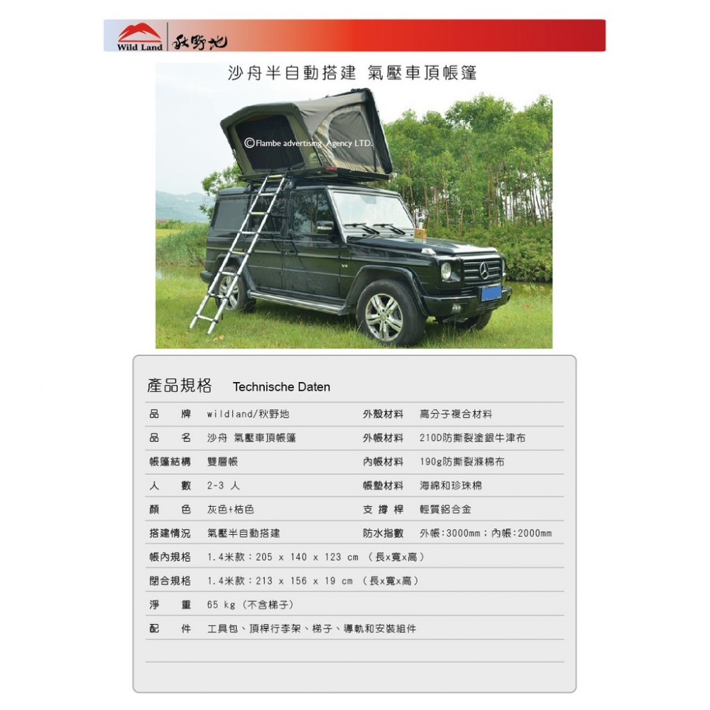 【秋野地】沙舟 1.4 半自動搭建 氣壓車頂帳篷 灰色+桔色 露營 汽車露營