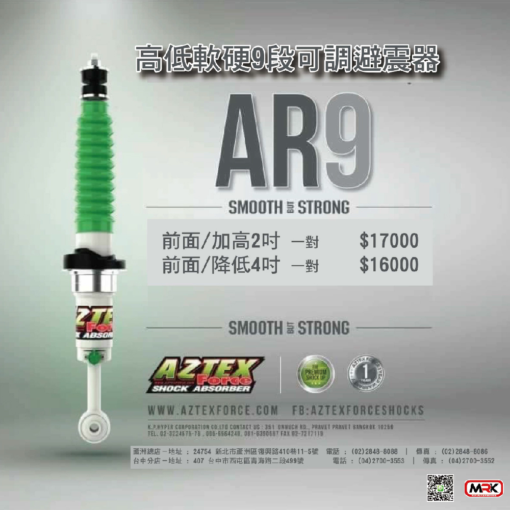 【AZTEX】AR9系列 Hilux專用 舉高0~2吋高低軟硬9段可調避震器桶身套裝 前AR97743+後AZ99744