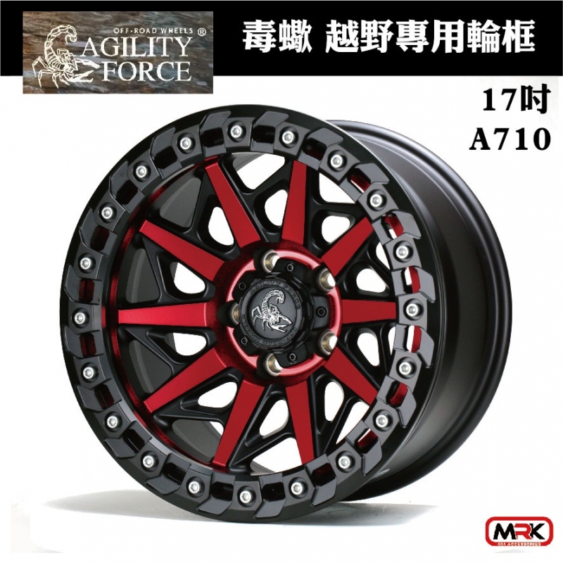 【AGILITY FORCE 毒蠍】HILUX專用輪框 鋁圈 17X8.5 6/139.7 A710 假防脫 黑框+紅爪+白螺絲 (單顆價)