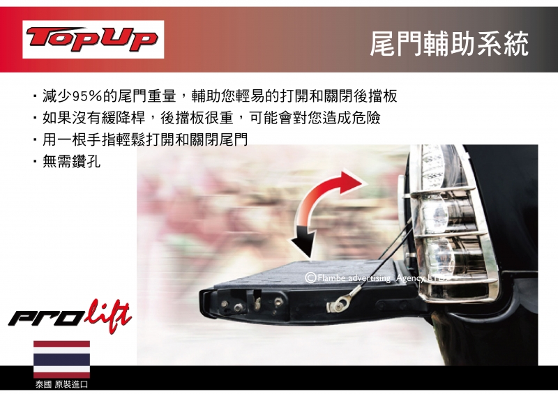 泰國原裝進口【TopUp】ProLift HILUX專用 尾門緩降輕拉套件 尾門輔助桿 尾門升降 緩降桿 PL-TY 010
