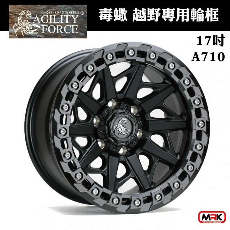 【AGILITY FORCE 毒蠍】HILUX專用輪框 鋁圈 17X8.5 6/139.7 A710 真防脫 黑框+黑爪+白螺絲 (單顆價)