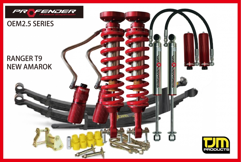 泰國【PROFENDER】FORD RANGER T9/NEW AMAROK專用【OEM2.5】 2"舉高 高低軟硬可調避震器 搭配前740s加重舉高彈簧【加裝鐵保專用】搭配TJM XGS葉片彈簧套裝