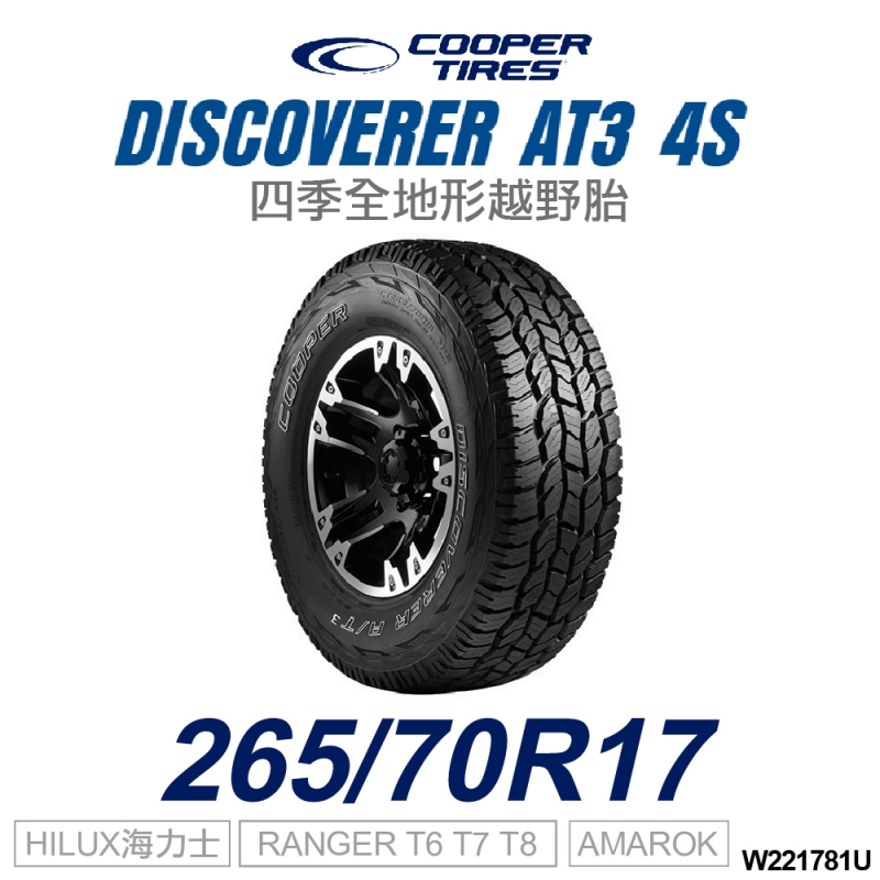 美國【COOPER TIRES】【265/70R17】【DISCOVERER AT3 4S】四季全地形越野胎 / HILUX RANGER T6 T7 T8 AMAROK (單條價)