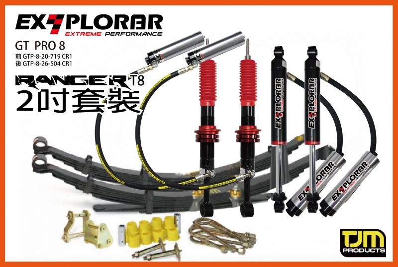 泰國【EXPLORER】FORD RANGER T8專用【GT PRO8】 2"舉高 高低可調避震器 簧搭配TJM XGS葉片彈簧套裝