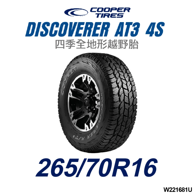 美國【COOPER TIRES】【265/70R16】【DISCOVERER AT3 4S】 四季全地形越野胎/AMAROK 比原廠規扁平率格105% (單條價)
