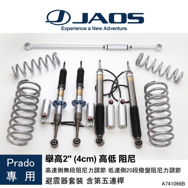 【JAOS】Prado專用 舉高2" (4cm) 高低 阻尼 高速側無段阻尼力調節 低速側20段撥盤阻尼力調節 避震器套裝 含第五連桿