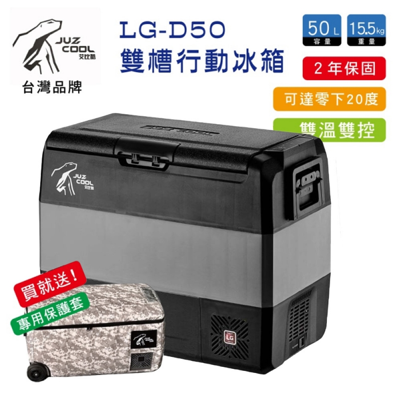 【Juz Cool 艾比酷】 車載冰箱 行動冰箱 露營冰箱 移動冰箱保固2年 雙槽雙溫控 LG壓縮機 車用冰箱LG-D50